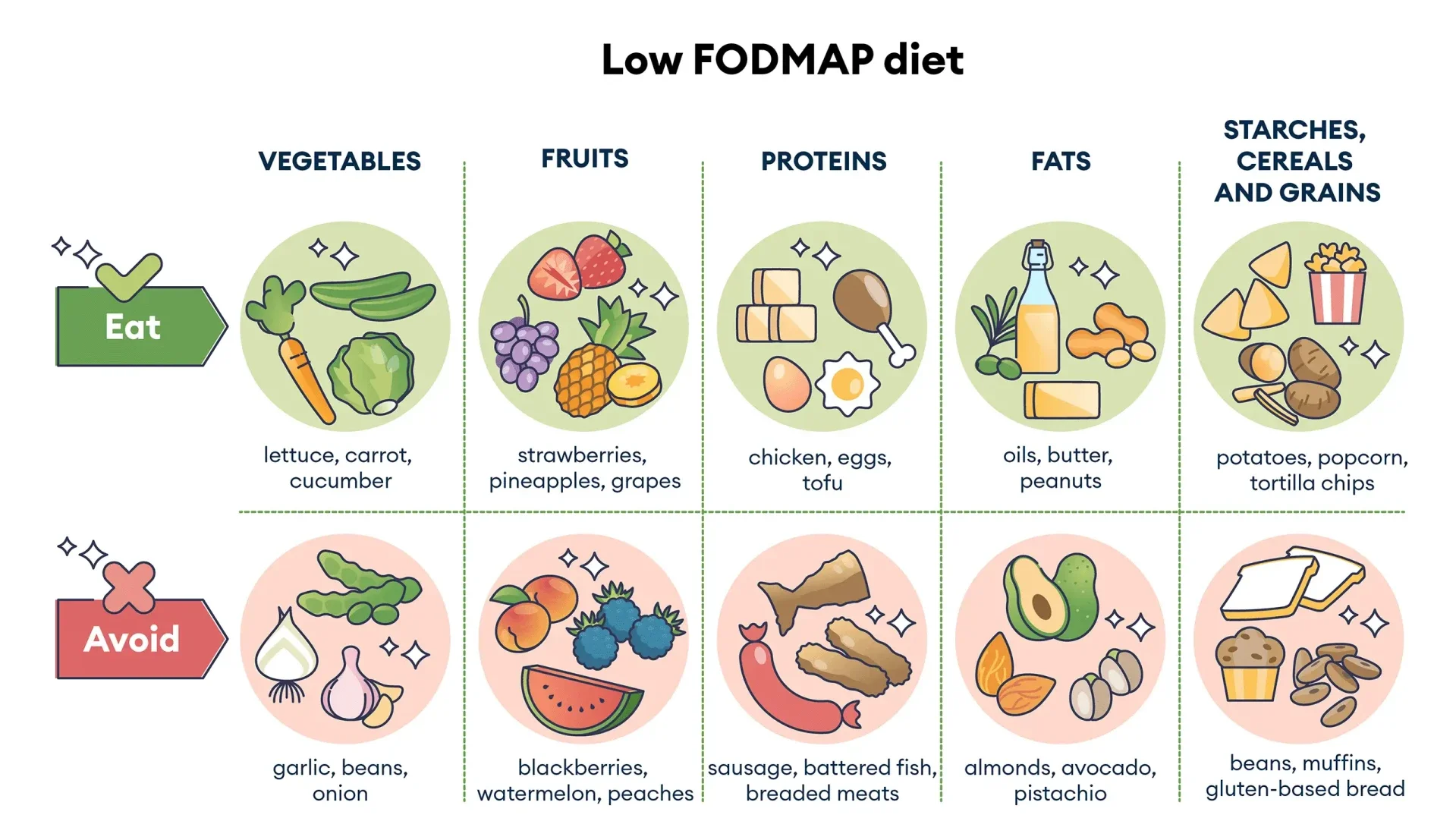 Associare i FODMAP a proteine e grassi contribuisce a rallentare i processi digestivi e fermentativi.